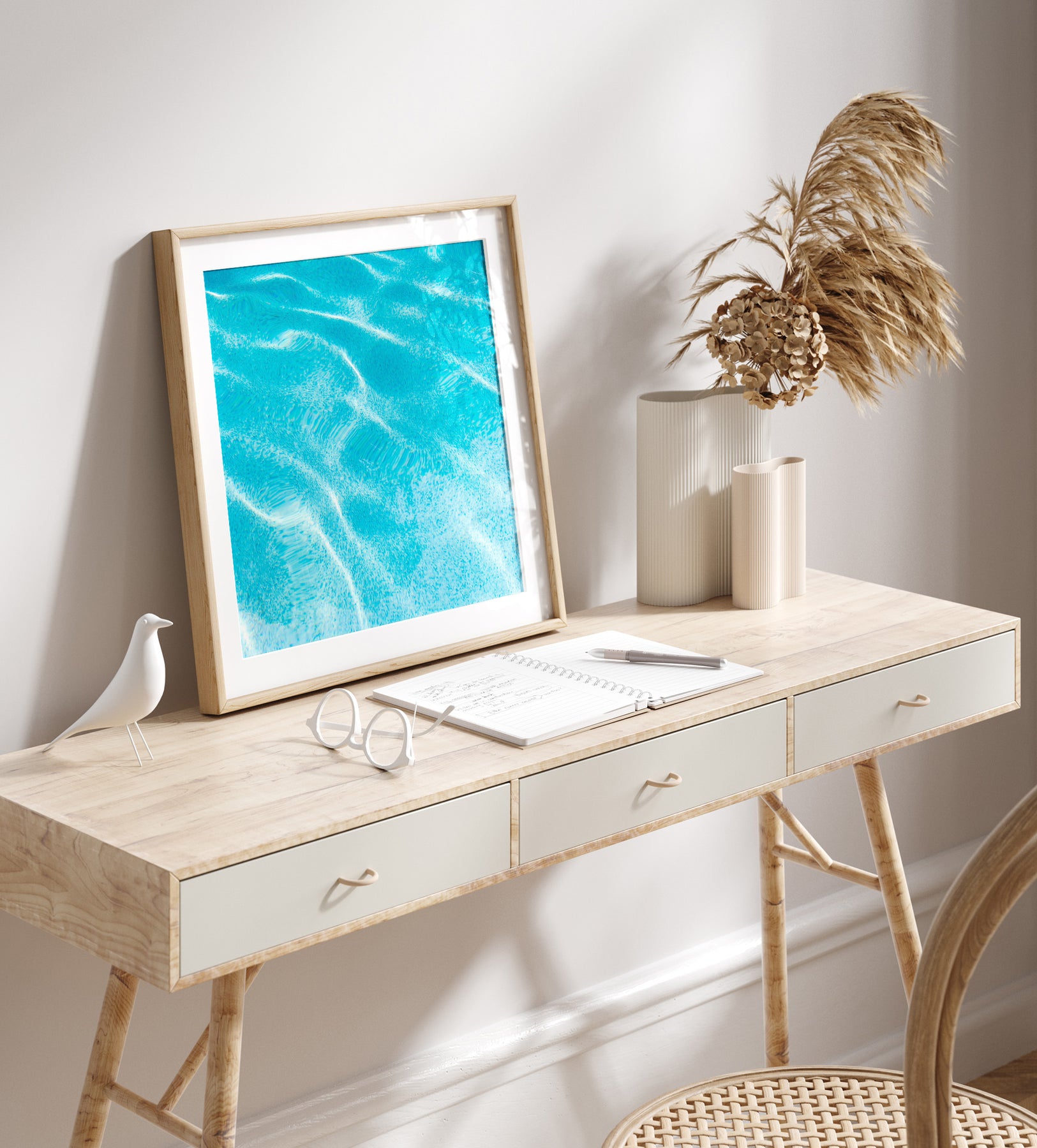 Framed prints come in a black, white, or natural wood frame with or without a white mat. The frames are handmade in the US from top-quality hardwoods and all archival materials. They are custom made to order, with beautiful spline joints and 99% UV-filtering acrylic glass. Depending on print size, the frames have a 1/2" - 1" face and 1 1/2" - 2 1/4" depth. Smaller frames are fitted with D-rings and a wire for hanging; large frames (24x36 inches and up) have a French cleat hanging system.