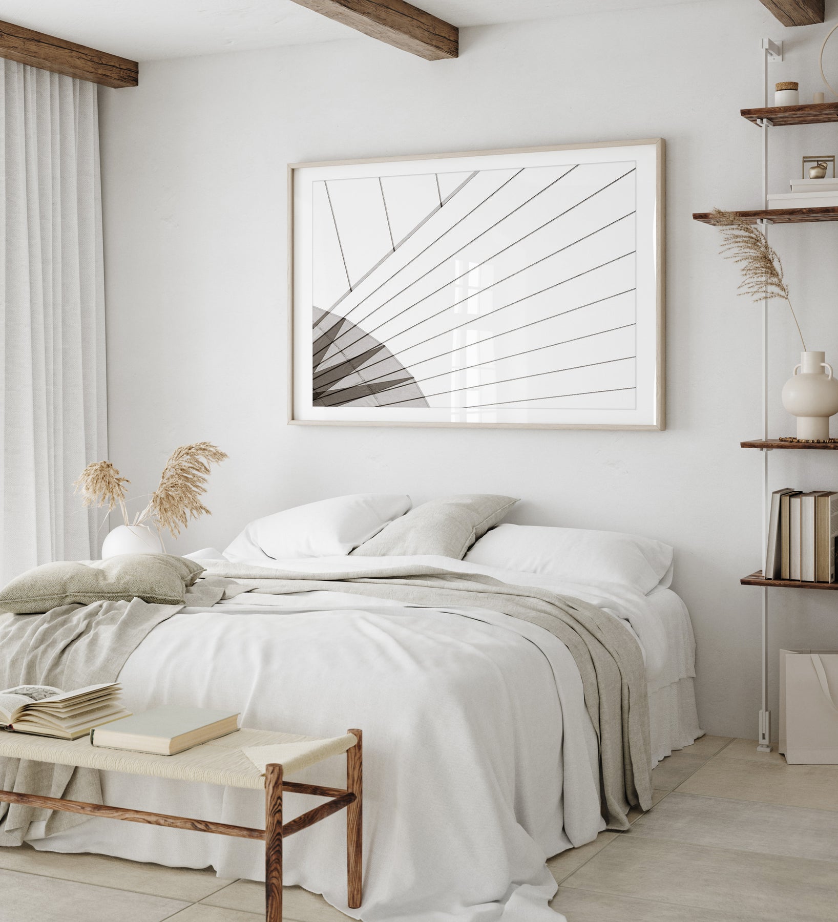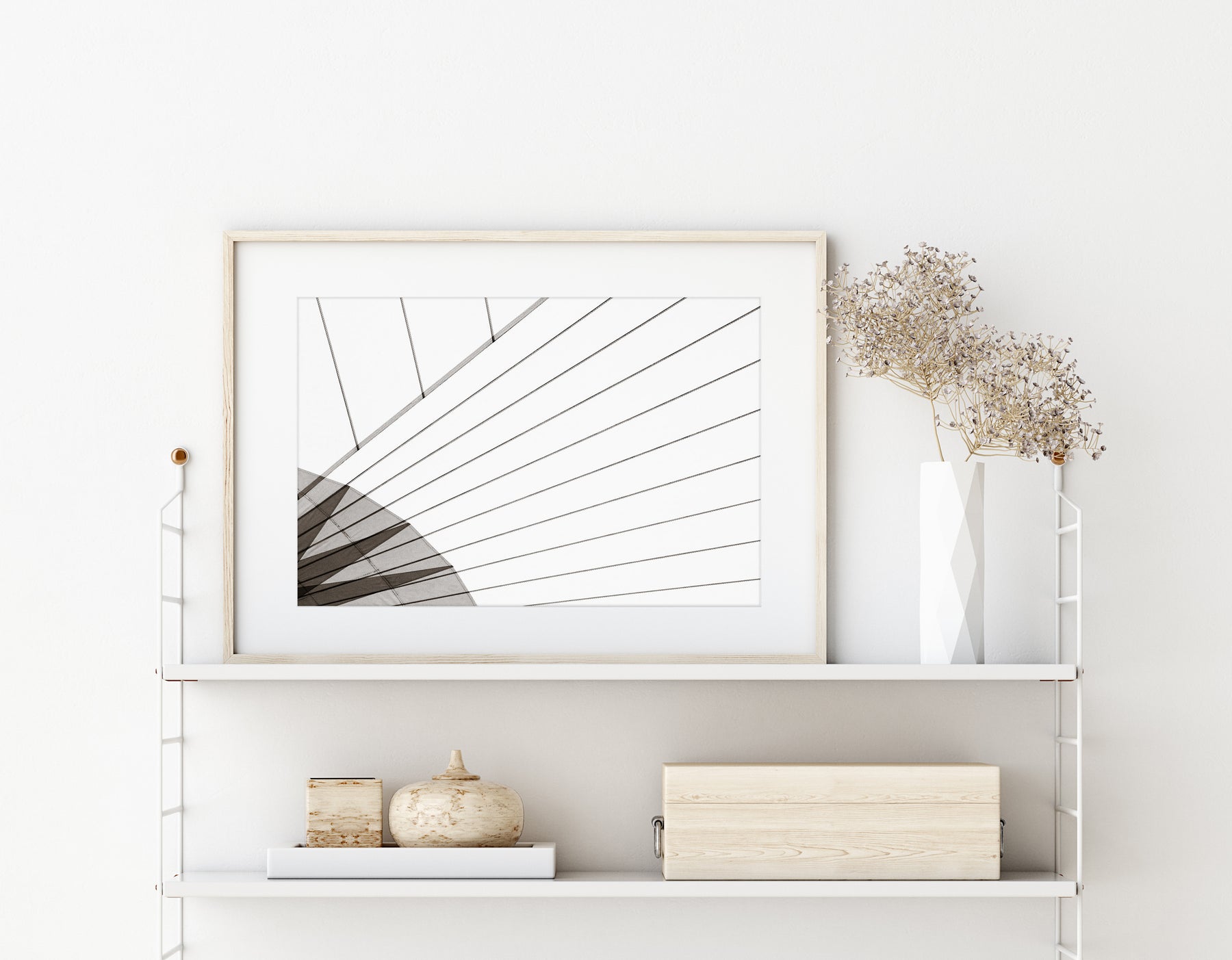 Framed prints come in a black, white, or natural wood frame with or without a white mat. The frames are handmade in the US from top-quality hardwoods and all archival materials. They are custom made to order, with beautiful spline joints and 99% UV-filtering acrylic glass. Depending on print size, the frames have a 1/2" - 1" face and 1 1/2" - 2 1/4" depth. Smaller frames are fitted with D-rings and a wire for hanging; large frames (24x36 inches and up) have a French cleat hanging system.