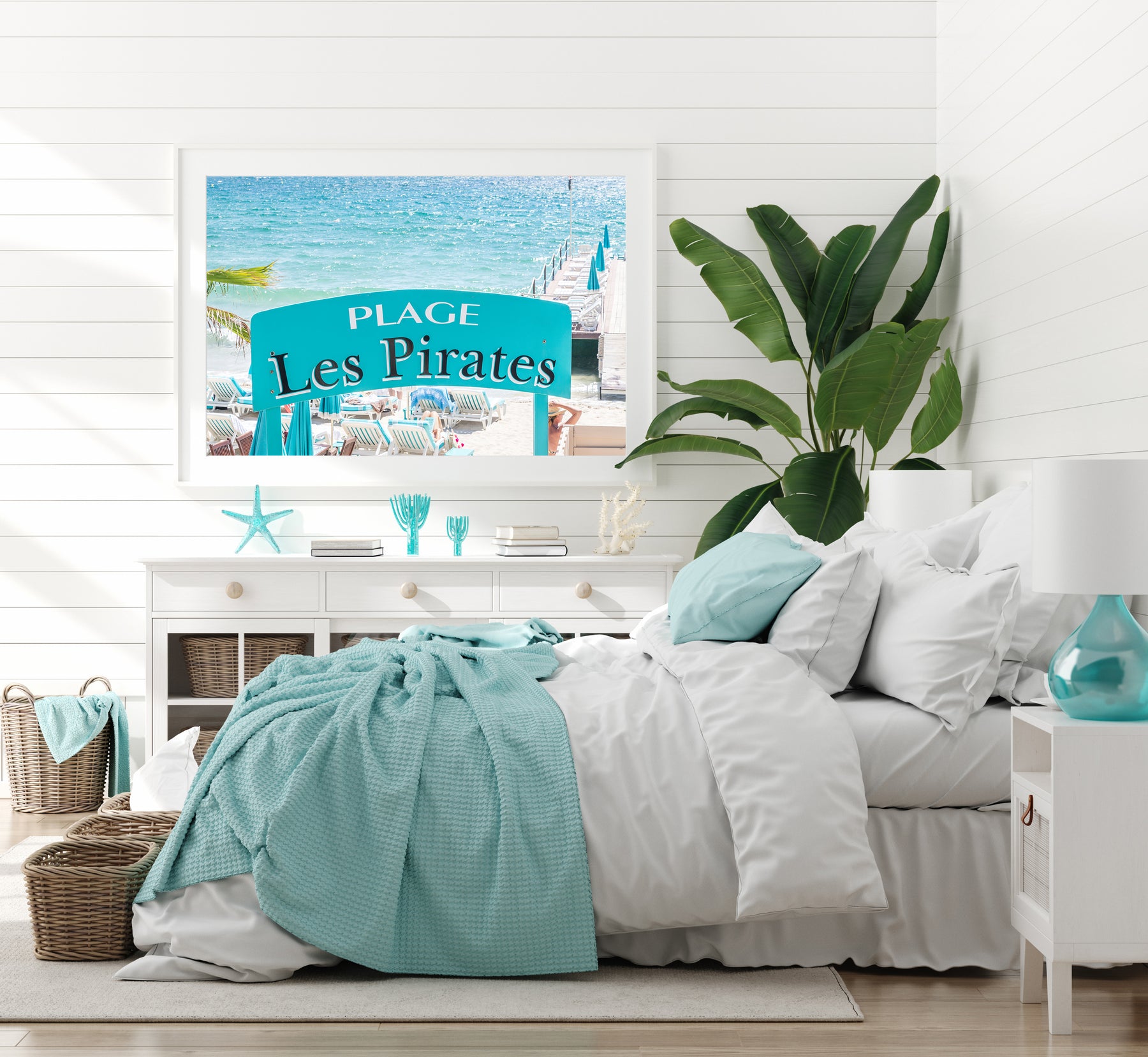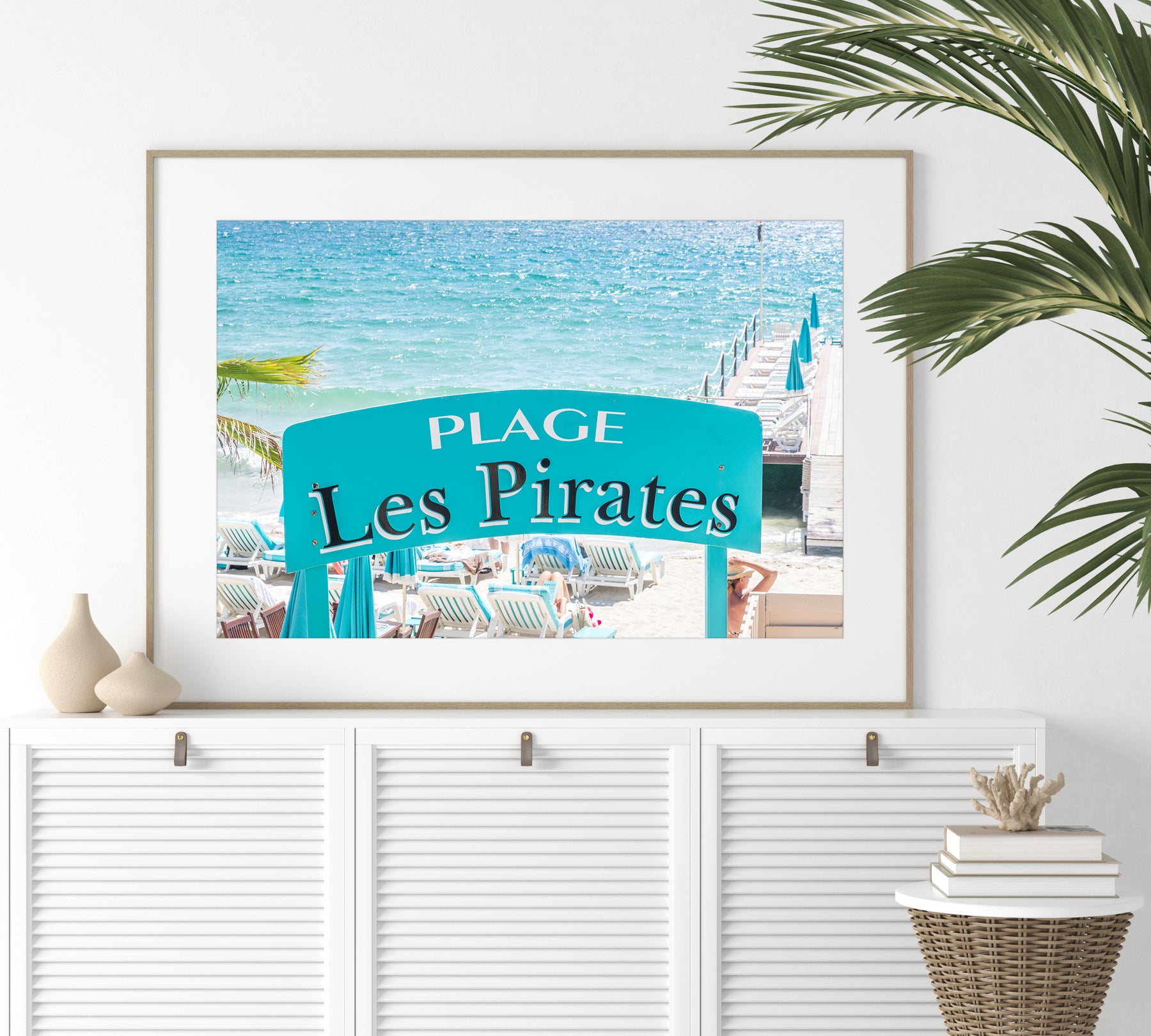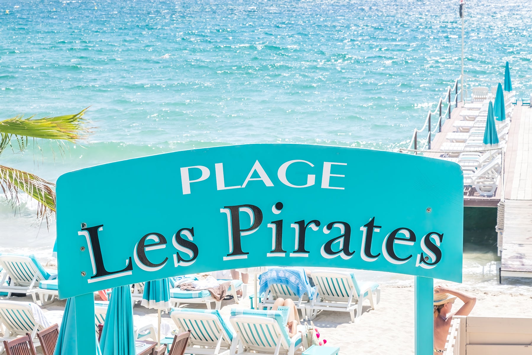 Summer afternoon at Plage les Pirates beach club in Juan-les-Pins on the French Riviera.