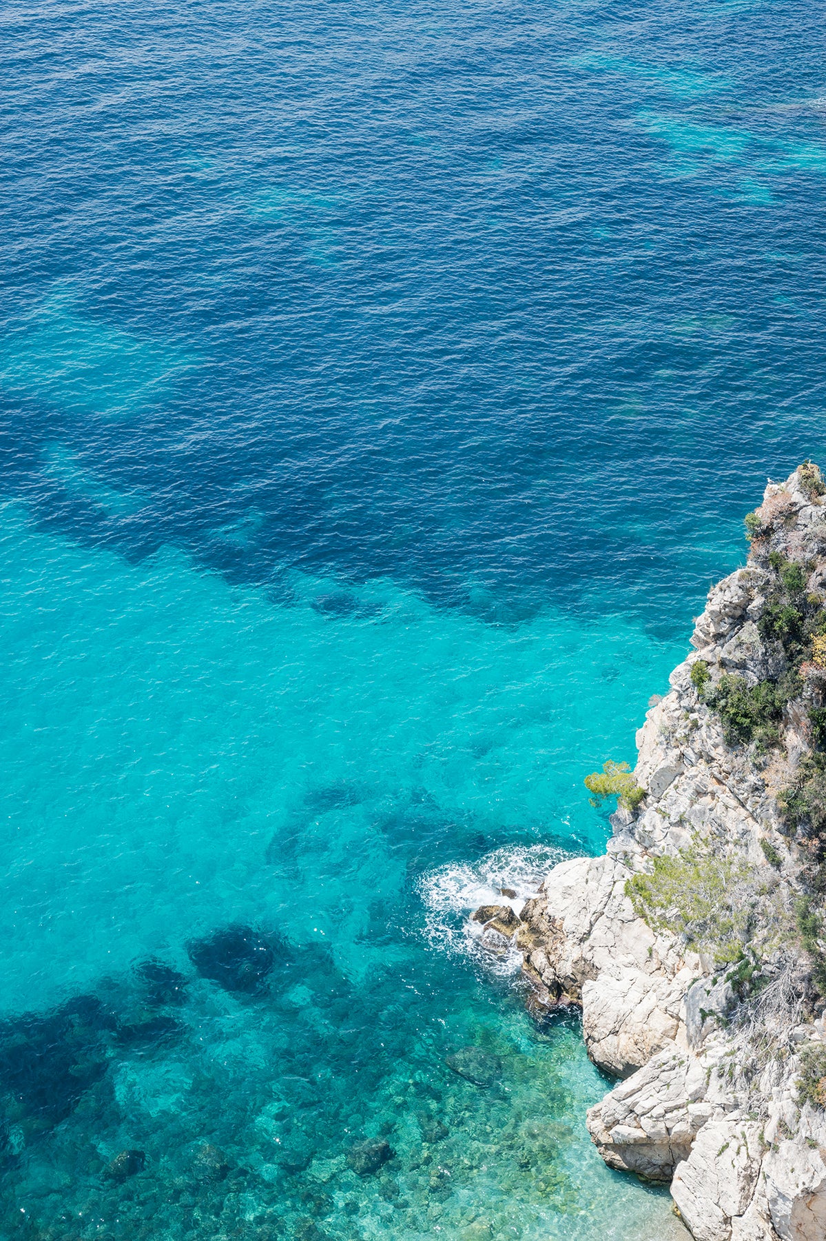 White limestone cliffs and turquoise Mediterranean water on the French Riviera.