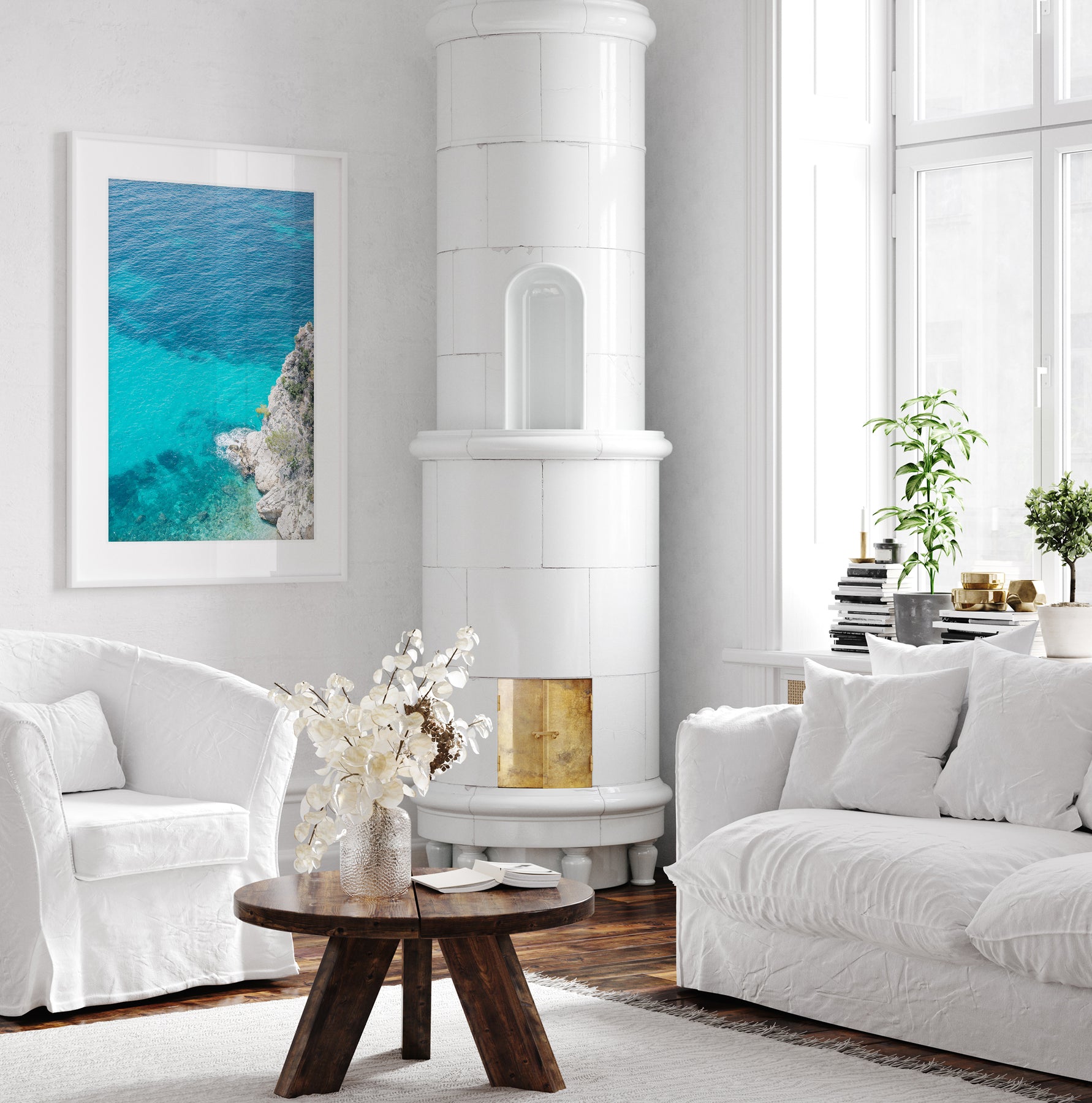 Acrylic glass prints are shatterproof, resistant to UV light and temperature fluctuations, and perfect when you want a frameless, contemporary look, or want to hang art in a bathroom, pool house, spa, or other humid area. They are created by mounting a print between acrylic glass and a sturdy aluminum DiBond backing, and the result is a clean, borderless, vibrant image with rich colors and depth.