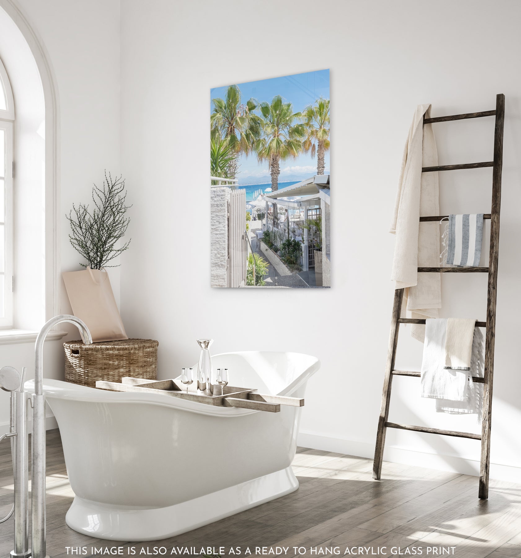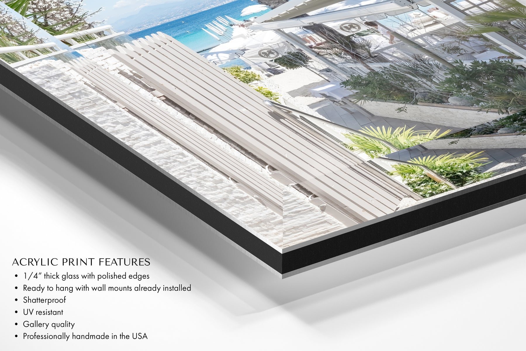 Acrylic glass prints are shatterproof, resistant to UV light and temperature fluctuations, and perfect when you want a frameless, contemporary look, or want to hang art in a bathroom, pool house, spa, or other humid area. They are created by mounting a print between acrylic glass and a sturdy aluminum DiBond backing, and the result is a clean, borderless, vibrant image with rich colors and depth.