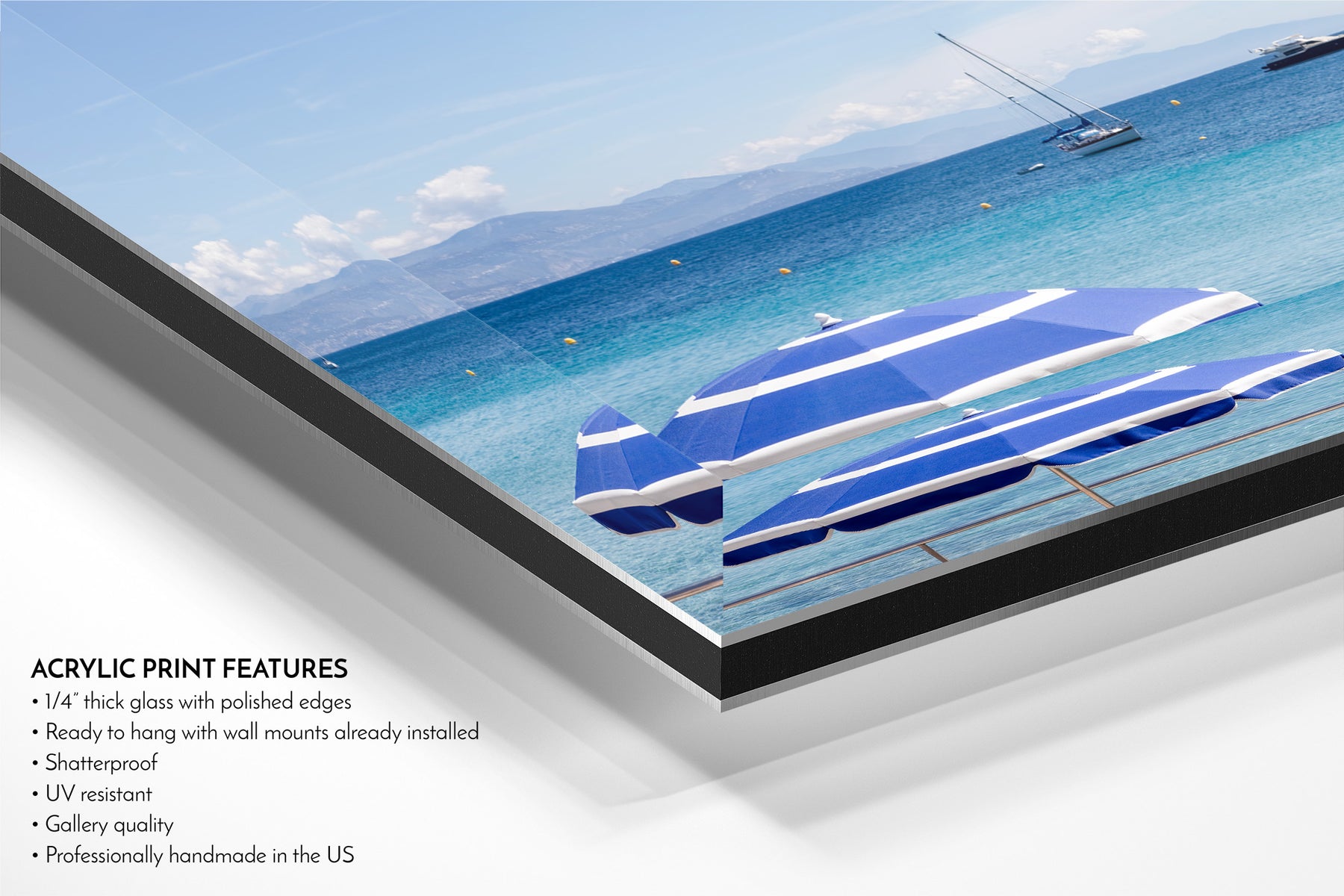 Acrylic glass prints are shatterproof, resistant to UV light and temperature fluctuations, and perfect when you want a frameless, contemporary look, or want to hang art in a bathroom, pool house, spa, or other humid area. They are created by mounting a print between acrylic glass and a sturdy aluminum DiBond backing, and the result is a clean, borderless, vibrant image with rich colors and depth.