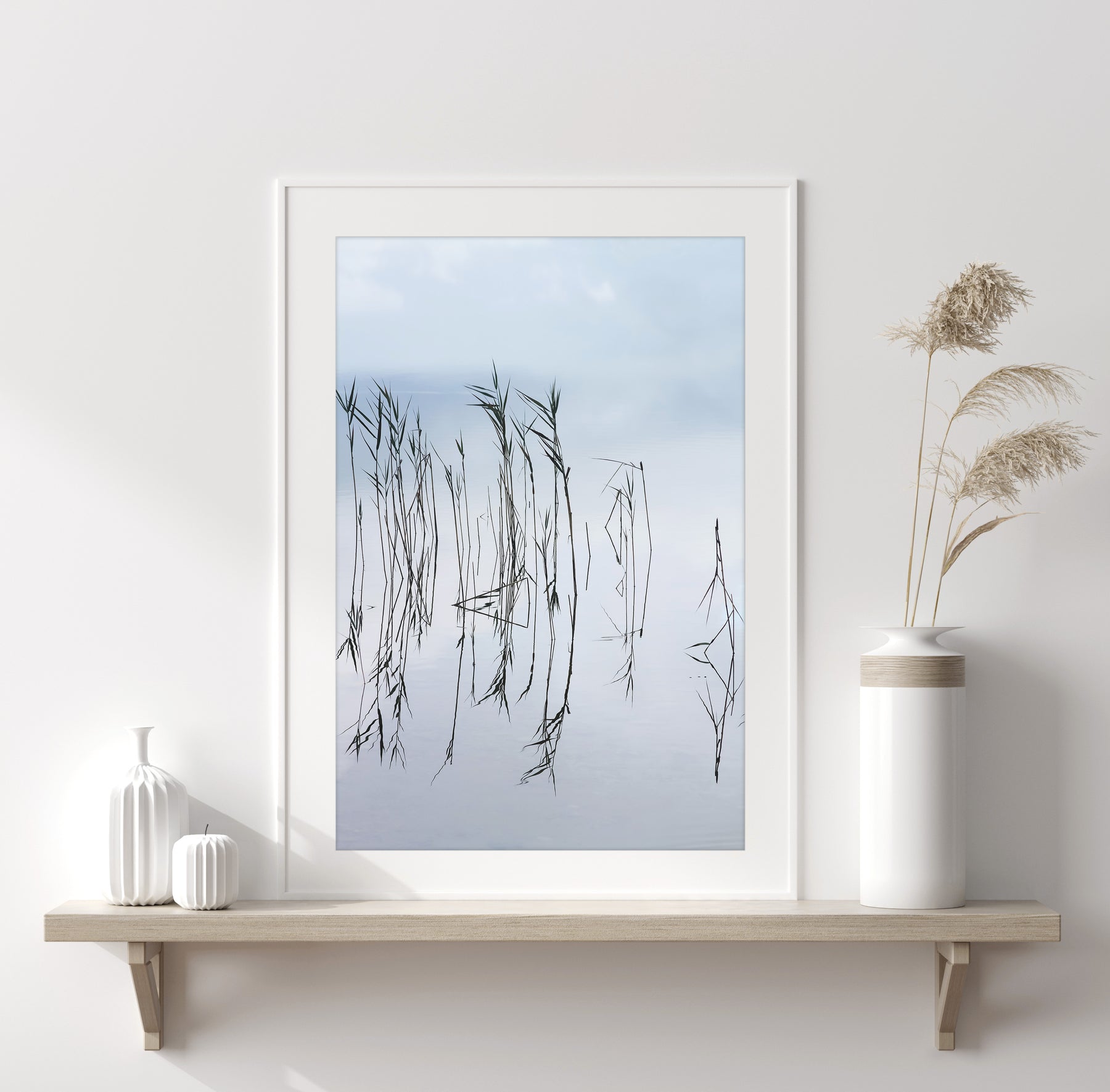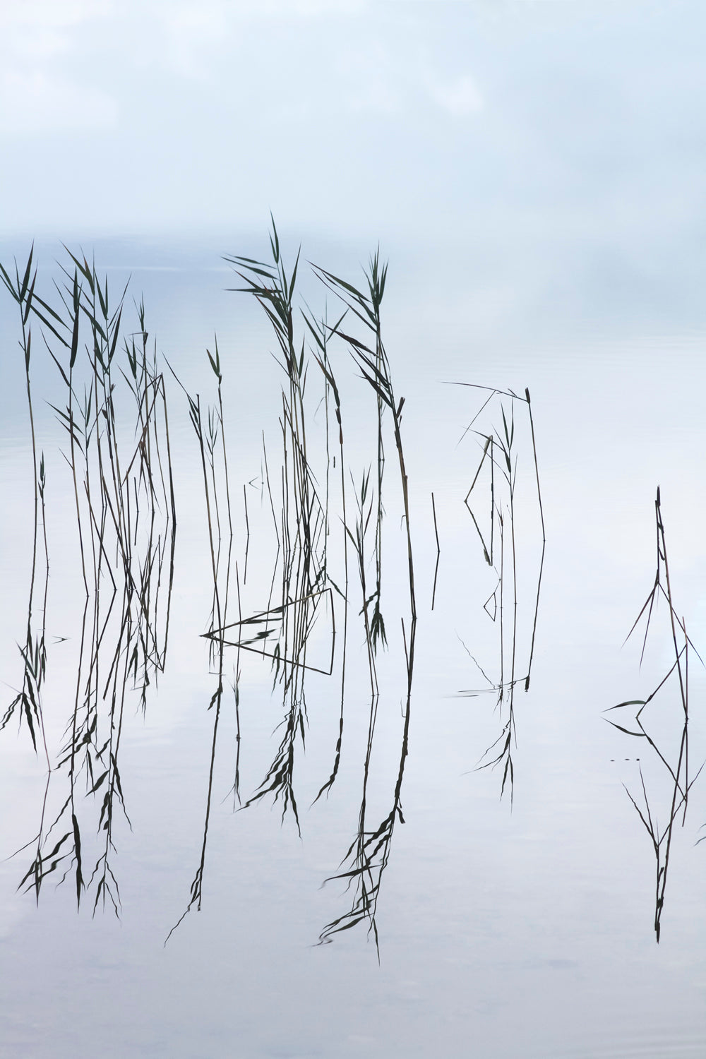 Clouds and reeds reflecting in calm water on a peaceful summer evening when all was quiet and it felt like the whole world stood still.