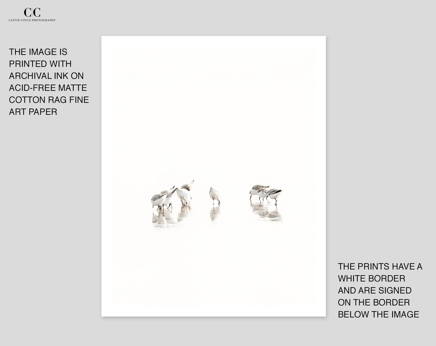 The image is printed on matte archival cotton rag fine art paper with a 0.5” - 2” white border (depending on image size) and is signed on the border below the image. Print sizes refer to the total paper size, including the border (e.g. a 11x14-inch print has 10x13-inch image with 0.5-inch borders). The prints are available unframed or framed, and every order is professionally custom printed.