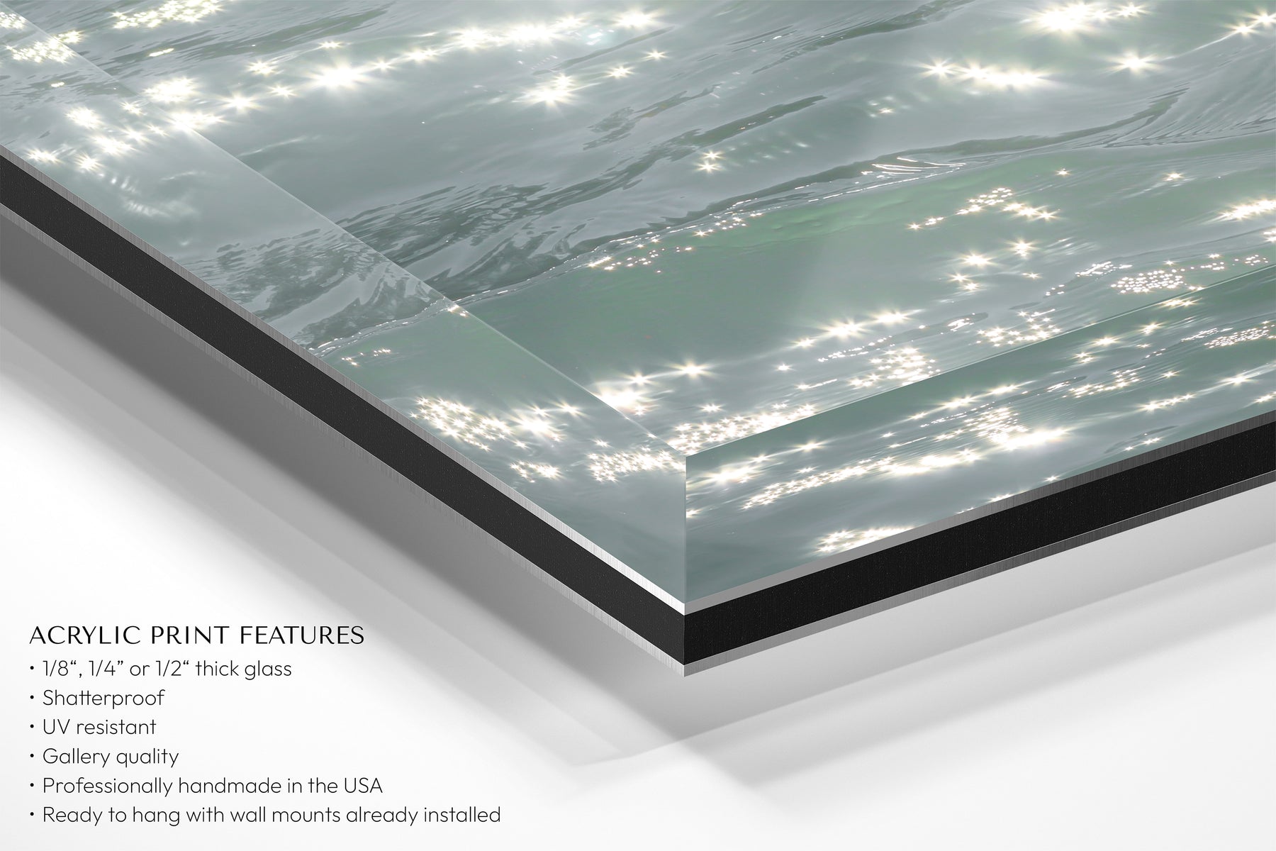 People sometimes call them “photo prints on glass or acrylic”, but there are a couple of different ways to create them, and my acrylic prints are actually not printed ON the acrylic. My lab uses the fine art, gallery-quality “face mounting” method, where the print is placed behind the acrylic and backed with DiBond (a rigid plastic core surrounded by two thin sheets of aluminum), and safely sealed in place. So when you look at the image, you look through the acrylic, and because of how light travels within it, you get a much more vibrant image with depth and colors that really pop. In the right light, it almost has a 3D look (the thicker the acrylic, the more 3D the look). Plus this method also gives you superior results in terms of color accuracy and permanence (no color fading).